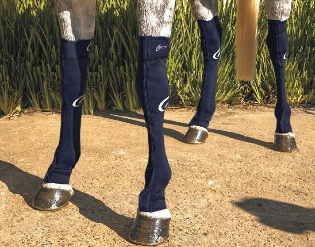 The compression socks will help the tissue repair process, it does this by reducing tendon vibration when the horse is moving around. Please note these can only be worn in the stable or traveling but not in the field.