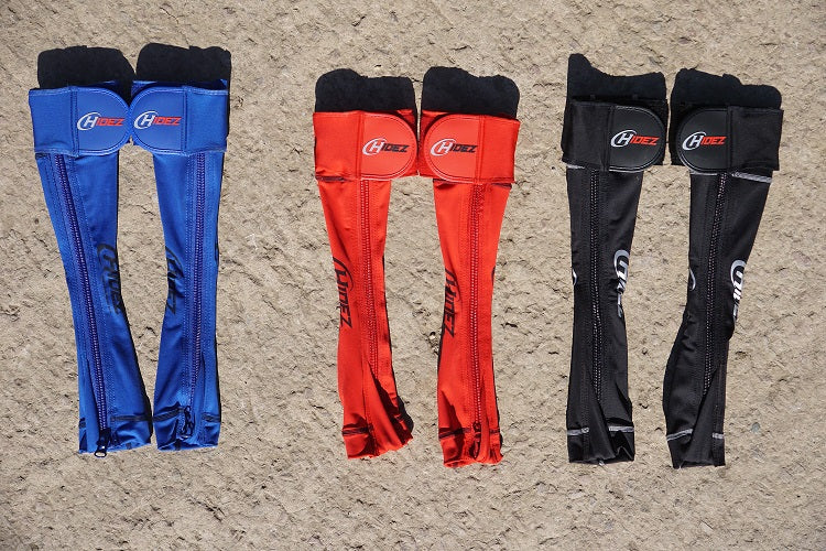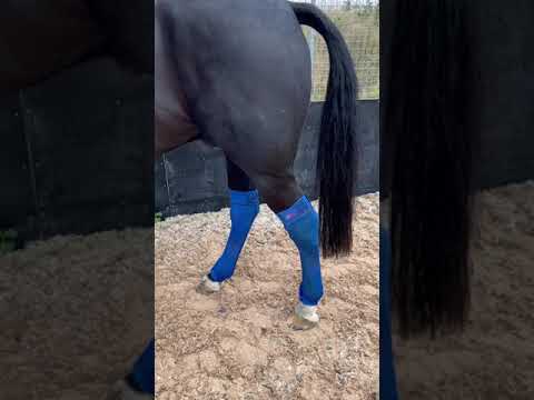 The compression speeds up recovery time for muscle and soft tissue injuries and soreness. The Hidez Socks are comfortable to wear and they do not overheat legs even in extreme temperatures. They do not slip down unless the legs are recently clipped and are secured by Velcro strap. Only designed to be worn in the stable. They do come in pony sizes which can be ordered and take a week to arrive.